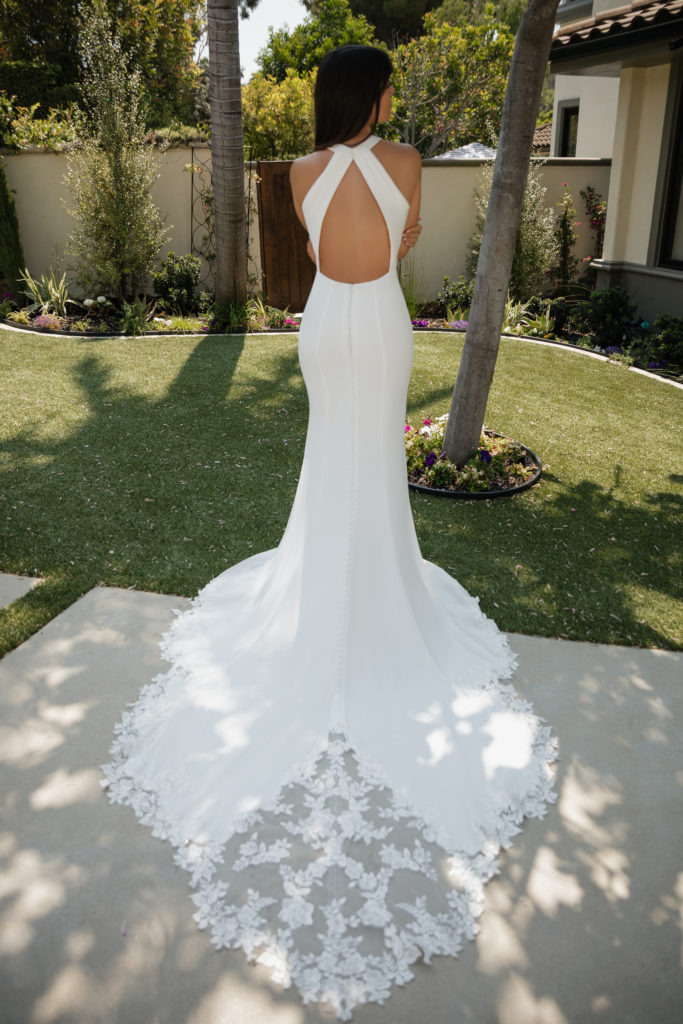 Ce modèle est le chic incarné!!! et que dire de cette traine en dentelle. Vous trouverez une longue ligne de petits boutons.