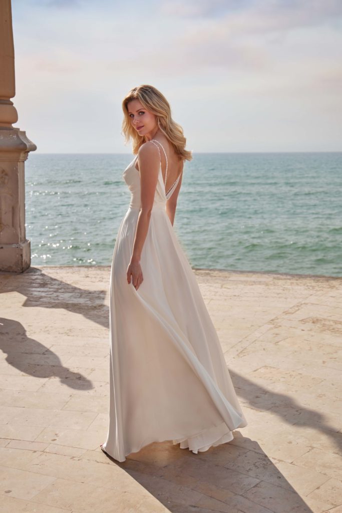La jupe est ample mais se porte sans jupon. Vous saurez apprécier les détails de cette création notamment avec ses bretelles en strass.