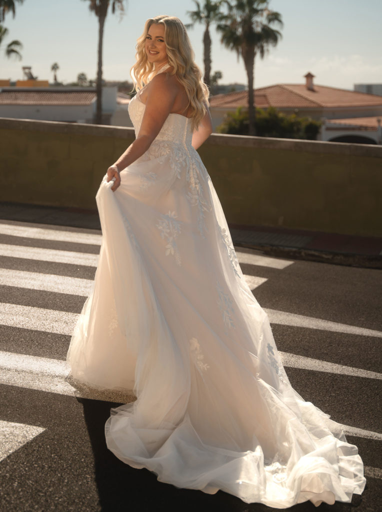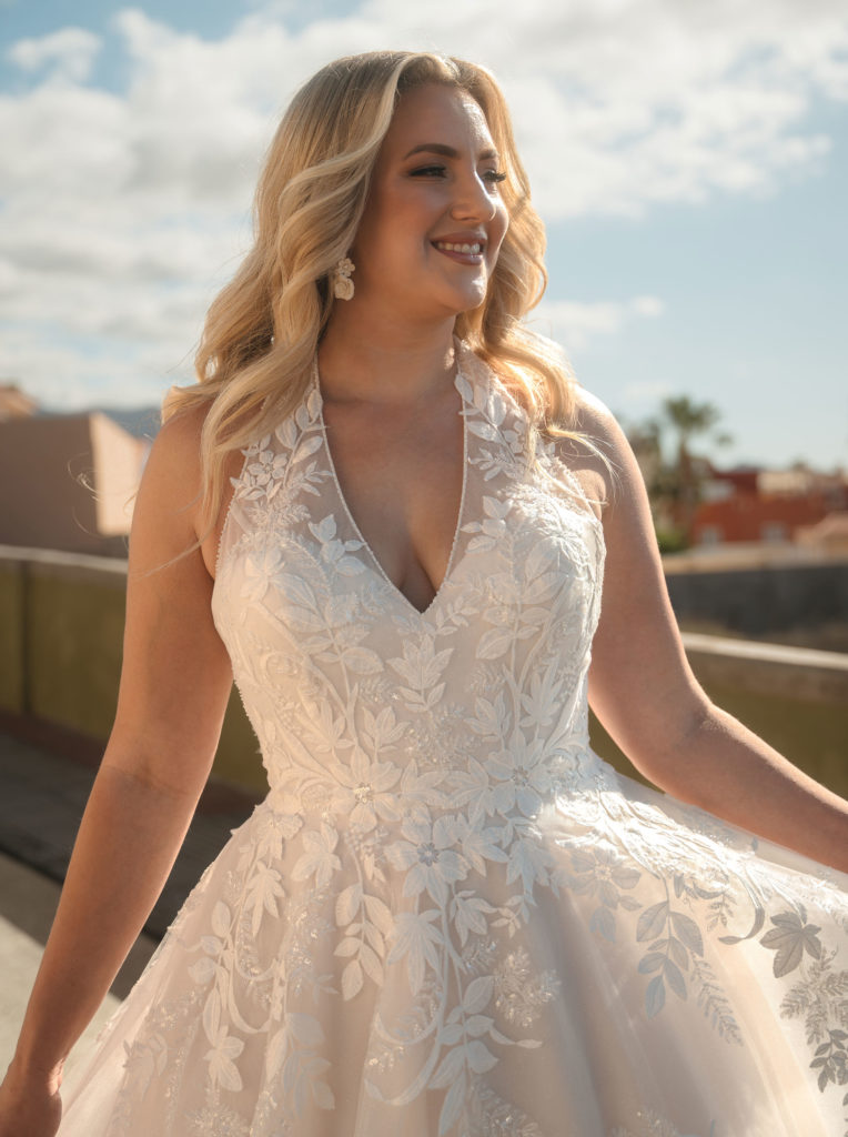 Une pure MERVEILLE, la robe 90704. On trouve rarement ce type d’encolure sur une robe de mariée.