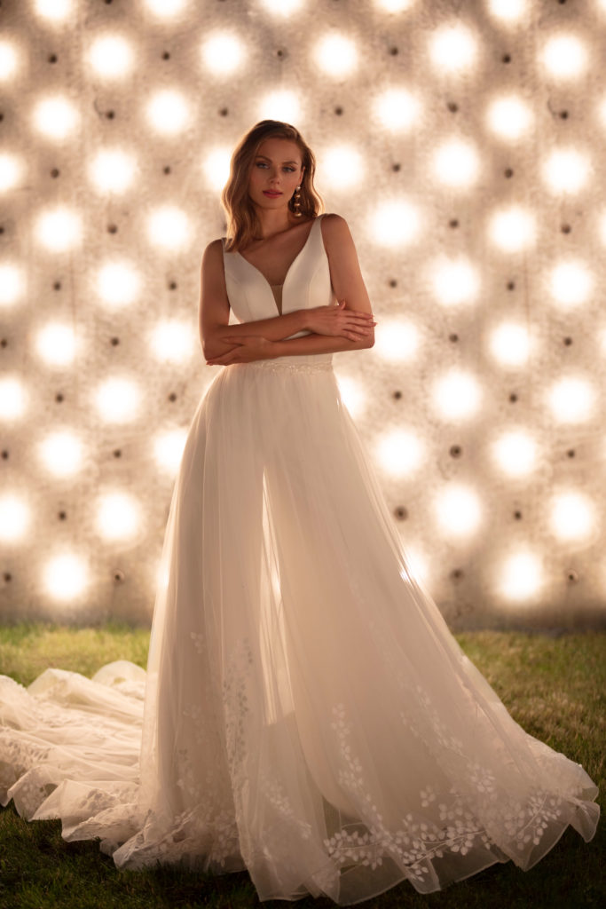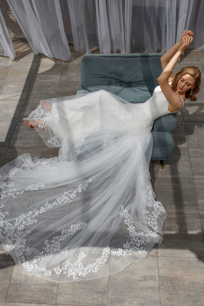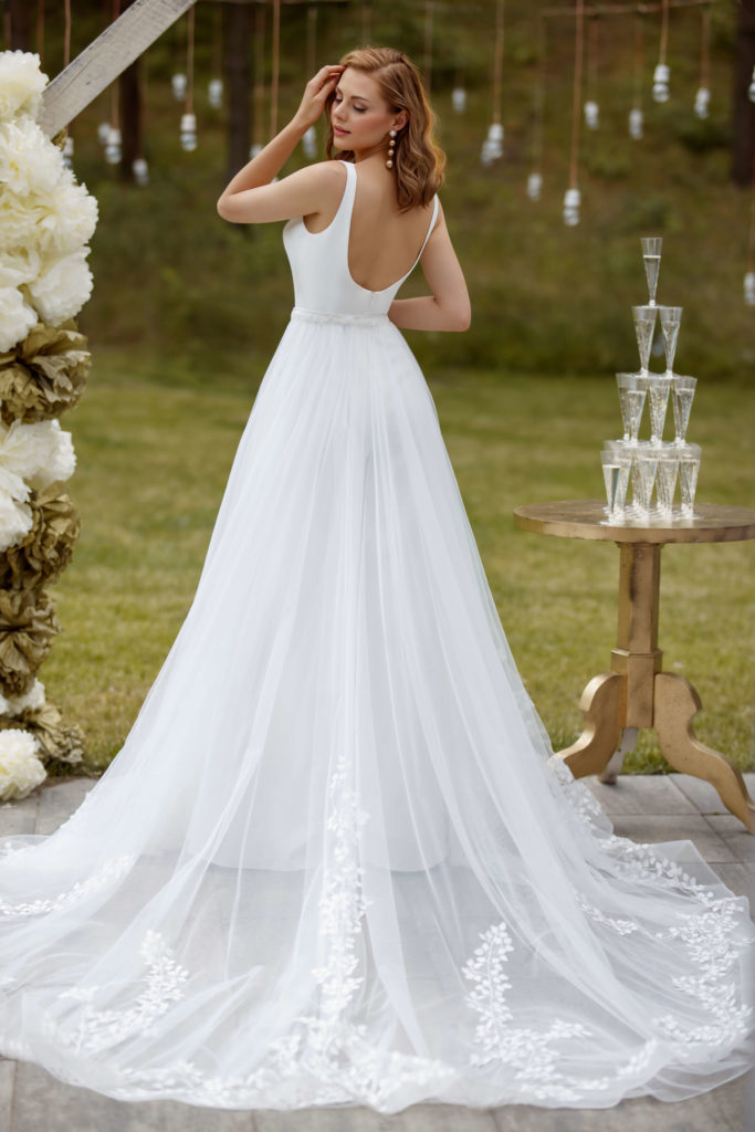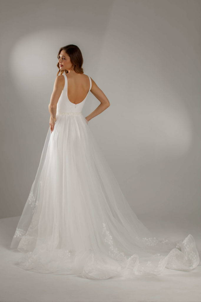 La traîne est également disponible sans dentelle et son prix est de 480€.