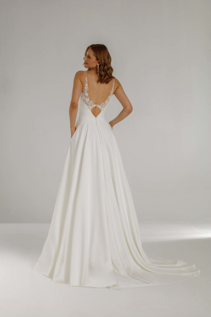 Elle propose un dos papillon mais nous pouvons également vous la fabriquer avec un dos en « v ».