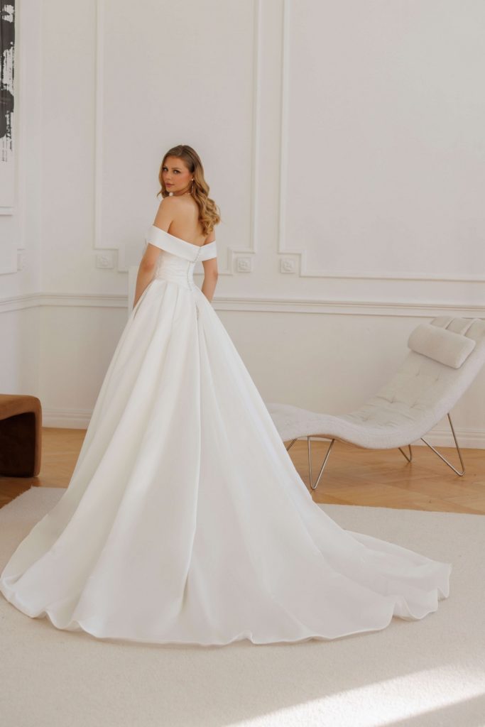 Cette robe est confectionnée en satin et se porte avec un jupon. L’avantage de celui-ci est qu’il se ferme au niveau du dos avec de petits boutons, ce qui vous donne plus d’aisance au niveau de vos mouvements.