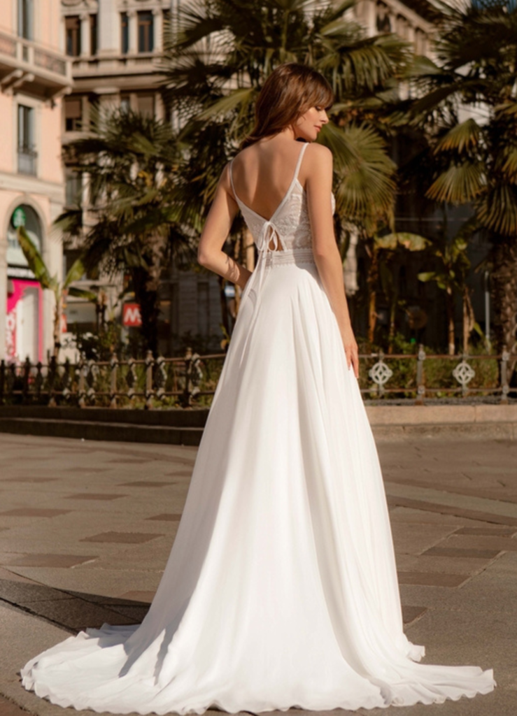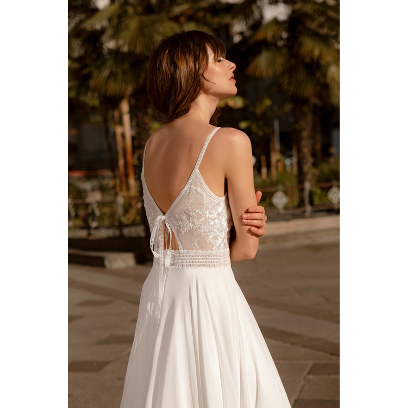 Petite robe en voile et dentelle se fermant grâce à un dos papillon.